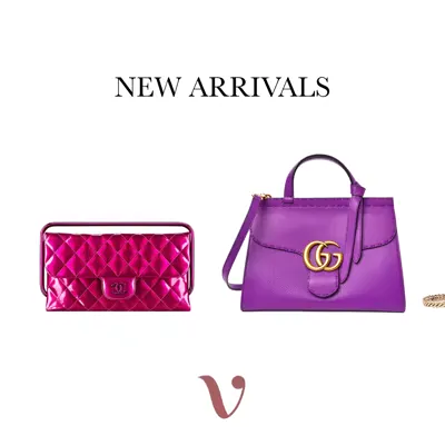 The ad showcases new inventory by rapidly cycling through hero shots of luxury bags every two seconds, keeping the pace high. A clean, plain background forces all attention onto the product details and vibrant colors, relying on brand recognition instead of a hard sales pitch.