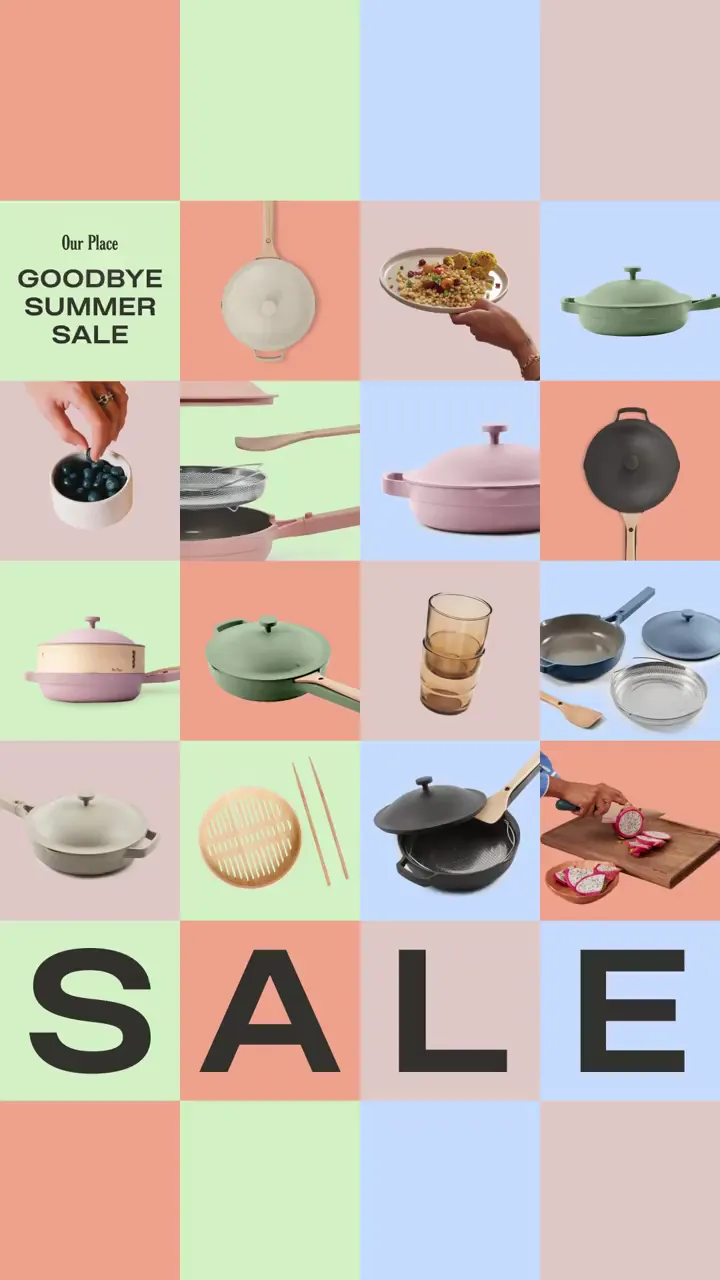 This ad skips a narrative for a fast-paced product collage, hooking viewers immediately with a bold 'Summer Sale' headline. Relying purely on dynamic visuals and text makes it powerful in sound-off feeds. A great play for a conversion-focused event using existing product shots.
